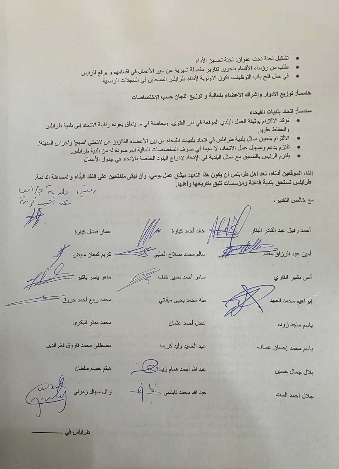 انتهت أزمة بلدية طرابلس. نجح مفتي طرابلس والشمال الشيخ محمد إمام في جمع الطرابلسيين على كلمة سواء. فوّقع رئيسا لائحة "رؤية طرابلس" عبد الحميد كريمة ولائحة "نسيج" وائل زمرلي على وثيقة الـ100 يوم، التي تتضمن خارطة عمل لبلدية طرابلس في الـ100 الأولى لها. بذلك ينتهي هاجس استقالة لائحة "نسيج" ويبقى عبد الحميد كريمة رئيساً لبلدية طرابلس.
